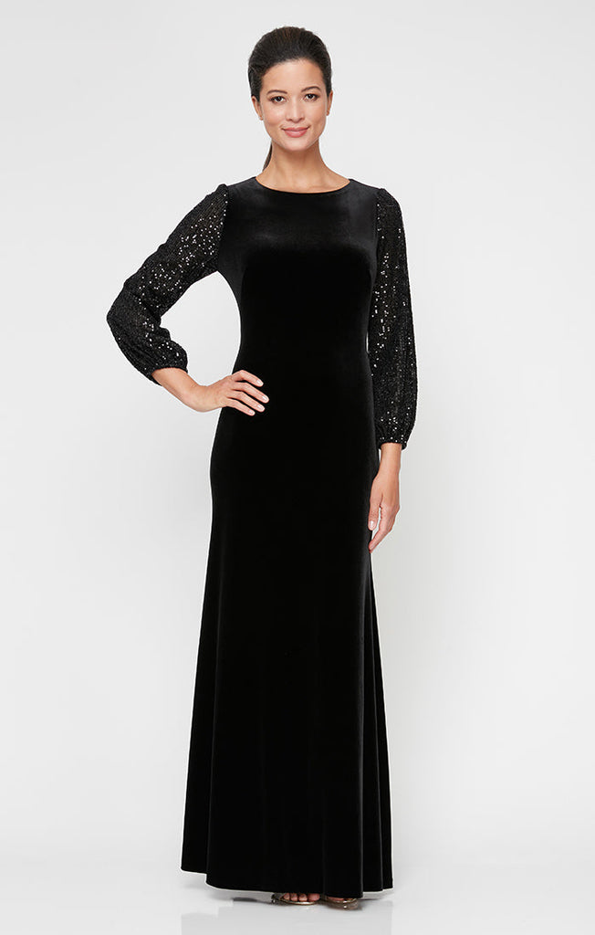 Long Fit and Flare Dress With Long Sequin Bubble Hem Sleeves