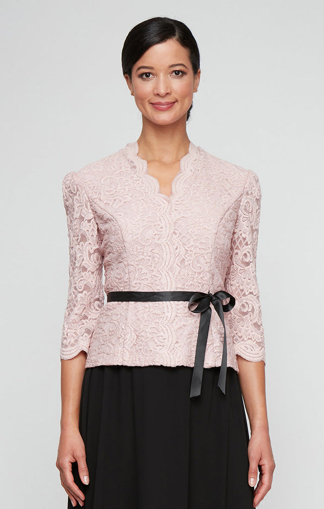 3/4 Sleeve Blouse with Scallop Front Detail and Tie Belt