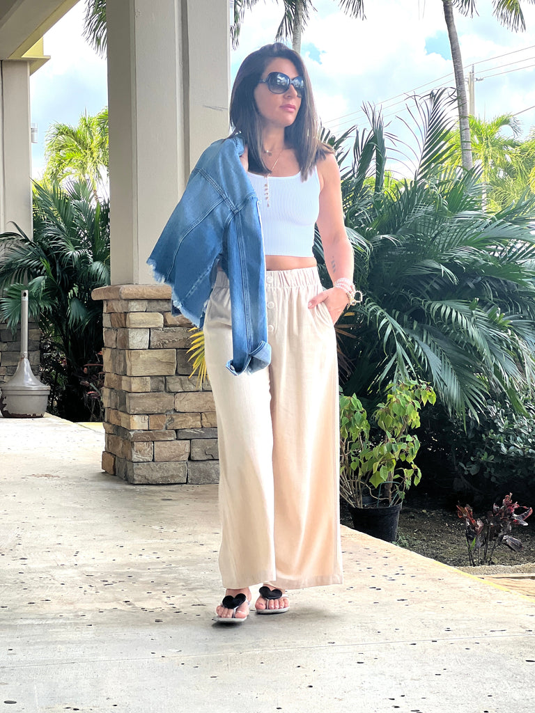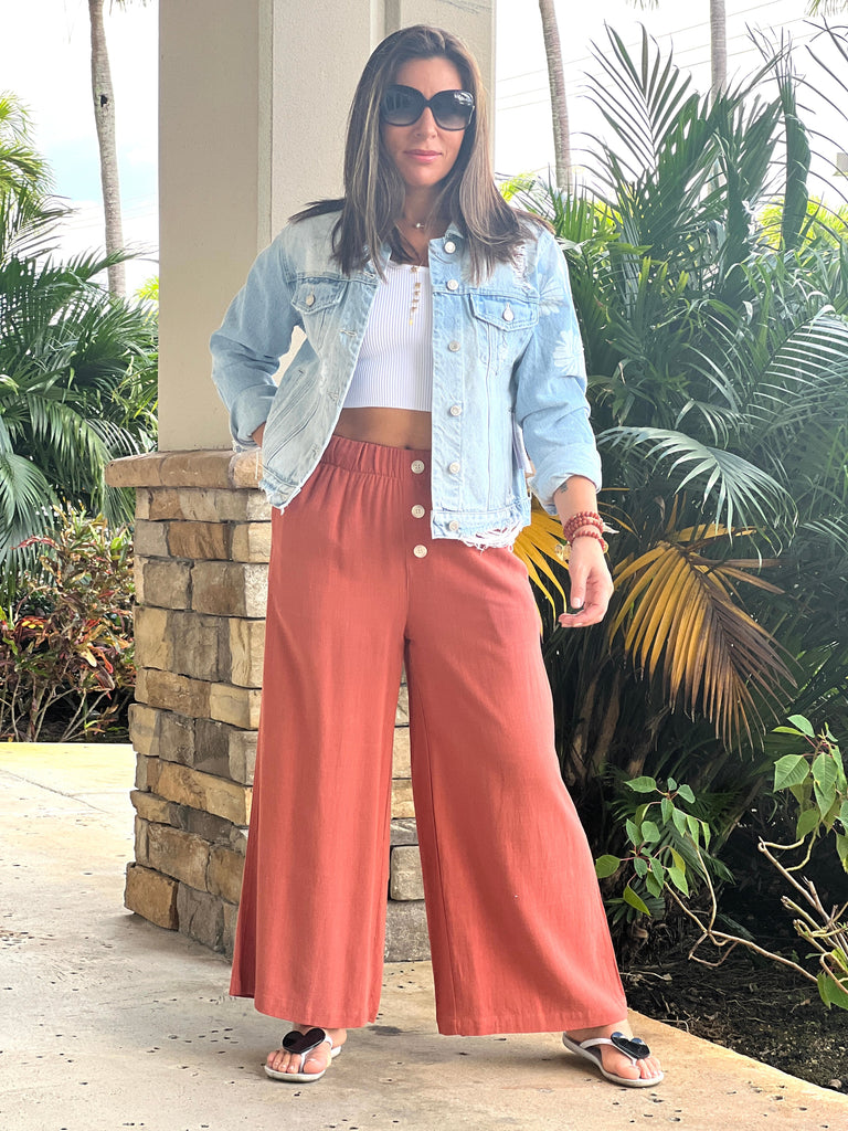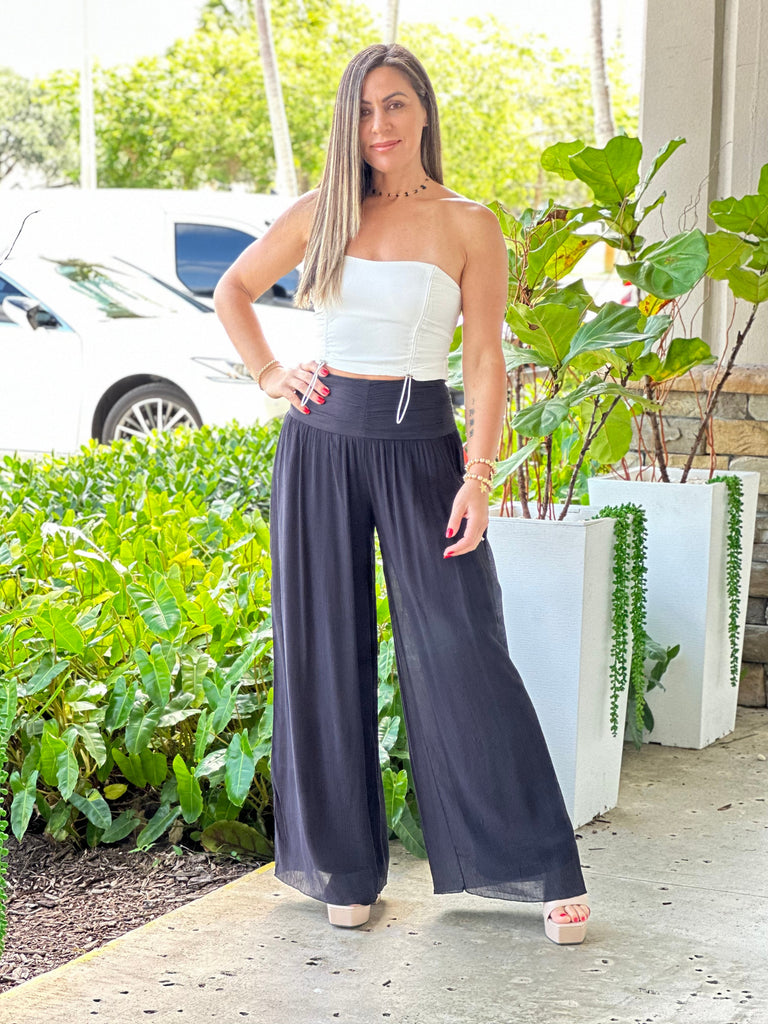 "Nova" High Waisted Shirred Wide Leg Flowy Pants