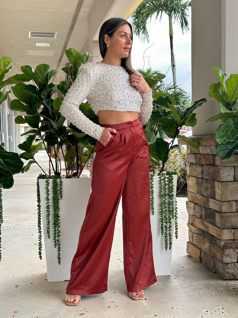 "Tricie" High Waisted Flare Legs Metallic Pants